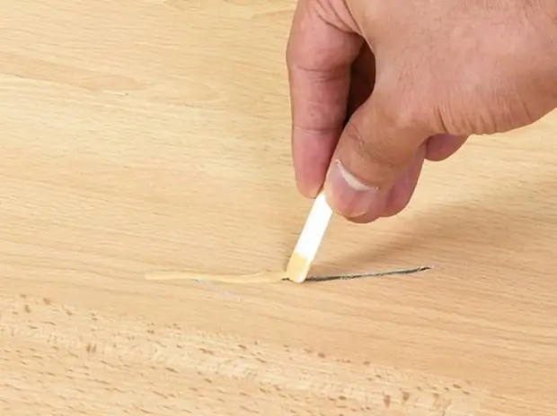Царапины, порезы и сколы на поверхности устраняются при помощи мебельного воска. Одной из главных задач при этом является тщательный подбор цвета воскового карандаша.